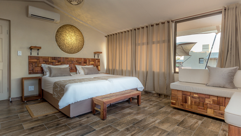The unique architecture of this luxury lodge pays tribute to its African desert surroundings. Building materials such as adobe bricks combine effortlessly with canvas, which arguably makes Sossusvlei Lodge Namibia’s most elegant luxury establishment. Small wonder then that Sossusvlei Lodge was named Namibia’s best lodge in 2006 and has also received a silver award of excellence.